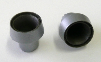 主なパーツを紹介しておきます。(写真8)が前脚、(写真9)が主脚(左)です。主脚柱にはランディングライトがモールドされていますが、ライトの部分をバイスで削り取り、内部をクロームシルバーで塗装してウェーブのH・アイズ3ミニのクリアパーツを埋め込みました。