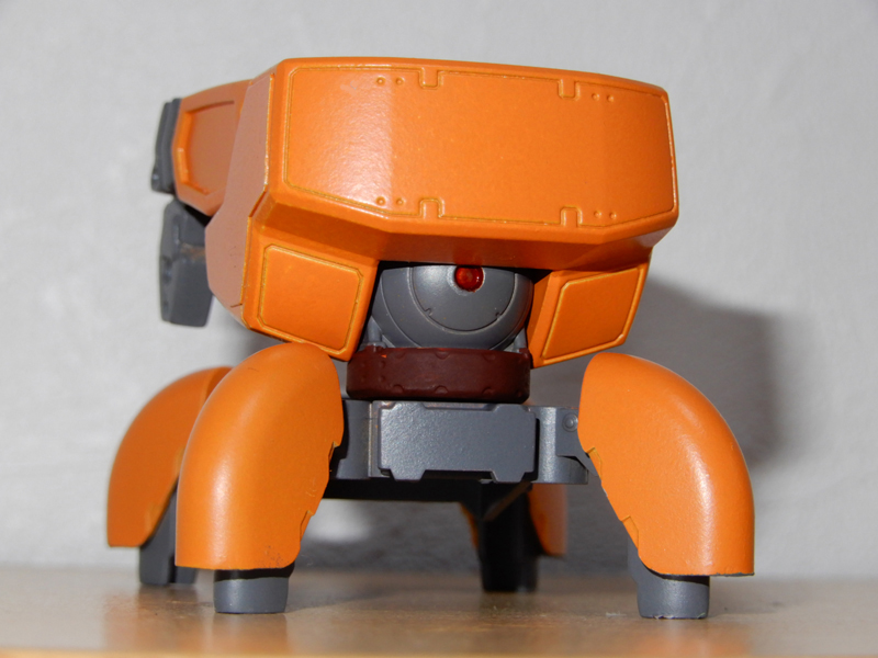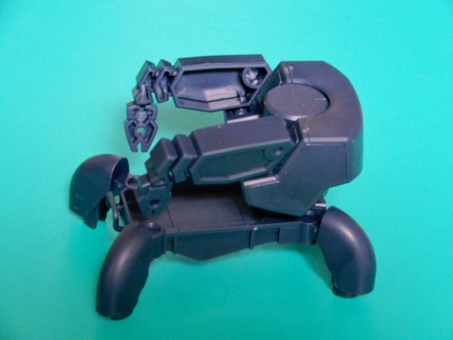 製作上の難点は,おまけのファイド君に集中しています。一対のマニピュレーターは,写真の通り,裏側の外装がなく,がらんどうになっています。いくらおまけとはいえ,悲しい限りです。今回は,汎用機のキットからマニピュレーターの部品をもらってきて外装を移植しました。