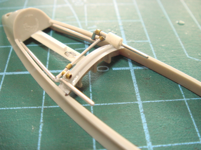 キットのフレームをプラ板で延長したのち前へ寄せて接着しておきます。
