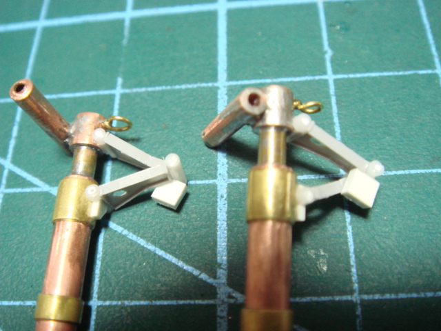 主脚柱下部にある係留リングは真鍮線をねじって丸くして作ります。