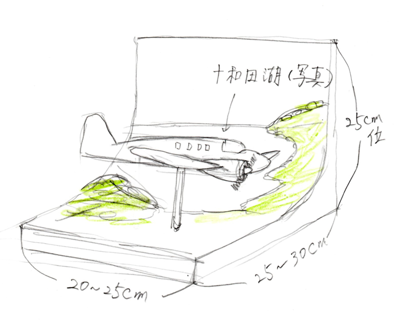 立川飛行機で公開された墜落機が十和田湖の上空をしっかりと飛んでいる情景を再現することを目指して製作しました。