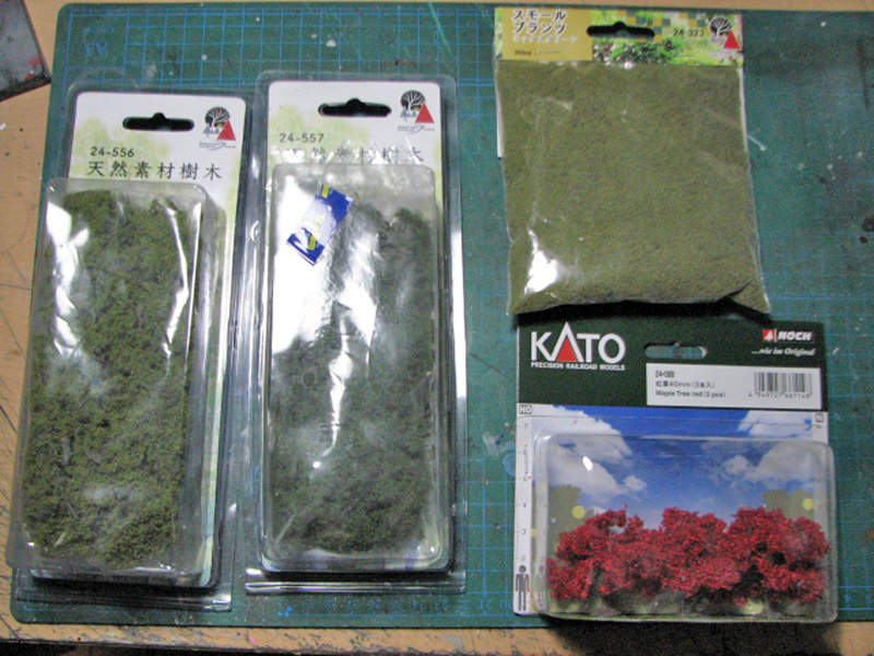 水平部分の地上は紙粘土を少し起伏を付けて敷き詰めてから、クレオスのウェザリングペーストで着色の上、鉄道模型用のジオラマ材料を使って森林を表現しました。