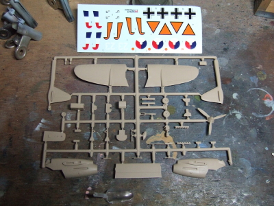 (写真2) パーツはこんだけ。ラッキーと考えるかしょんぼりするかはモデラー次第です。ちなみにわたしは前者の方。主翼が一体成型っちゅーのはとっても嬉しいでありますのコトよ。