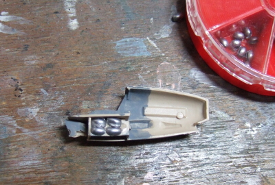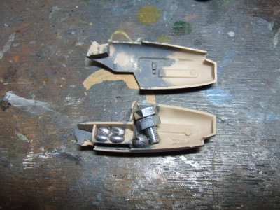 (写真3) 今回最大の懸案事項が機首のオモリでありまして果たしてこの狭すぎる空間に満足のいくウェイトを乗せられるかどうか。いっそのこと機首の下面部が全部メタルだったら良かったのに、と思うのはわたしだけ?
