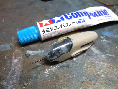 (写真5) キャノピーは曇りガラスみたいだったのでちょびっと磨いてみました。まぁこれ位なら許せるかなぁ。