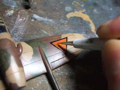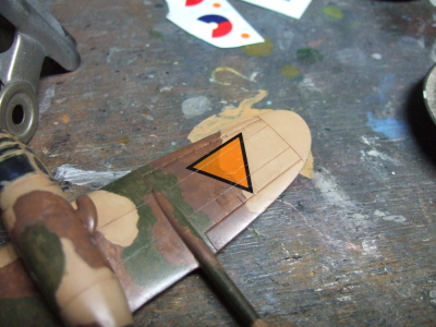 (写真10) しょーがねーなぁもう。デカールが完全に乾いてからサファリオレンジで上塗りじゃ。