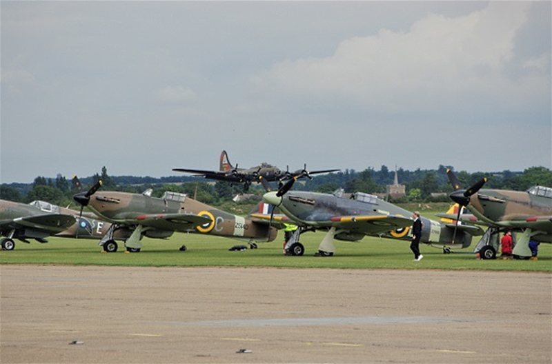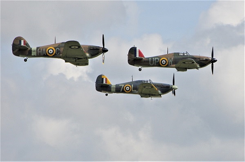 ダックスフォード上空のハリケーン3機編隊。これぞ大英帝国!