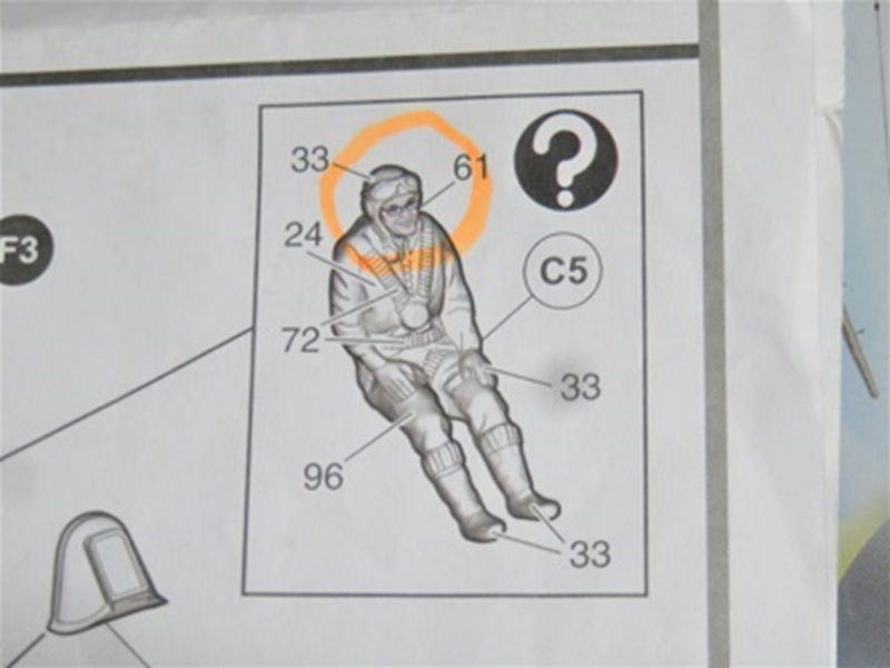 正面のエアMk.Ⅰは主翼羽布張りの外、主脚収容庫と操縦席の再現に、工作はまごつきましたが、驚嘆しました。コクピットはシートと後方の防弾板、計器版を一体にして「左胴体側」に取り付けます。左側に接着するだけで驚きでしたが、右側に接着しても、特に支障はないようです。また組立説明書に書かれた操縦士は、なんと眼鏡着用! なおキットに眼鏡はありませんでした。