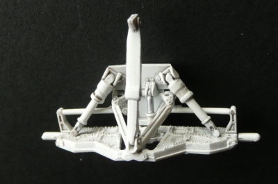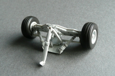 機体下面に取り付けられ、完成するとあまり見えなくなる部品について紹介しておきます。一つ目は主脚です。(写真18)は1/72スケールながらリアル感のある主脚柱です。(写真19)は主脚でこれに主車輪を装着した状態です。