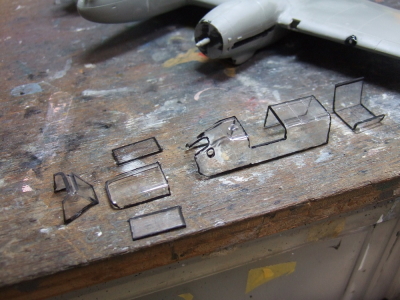 (写真4) ムダにバラバラのキャノピー。絶対に合わないだろなって確信がある。このパーツの状態でビタッと寸分狂いなく組み上がるのはタミヤくらいのもんだよ。密閉するよりも開放状態の方が簡単でしょうね、多分。けれど男には無茶と分かっていても挑まねばならぬ時があるのです。