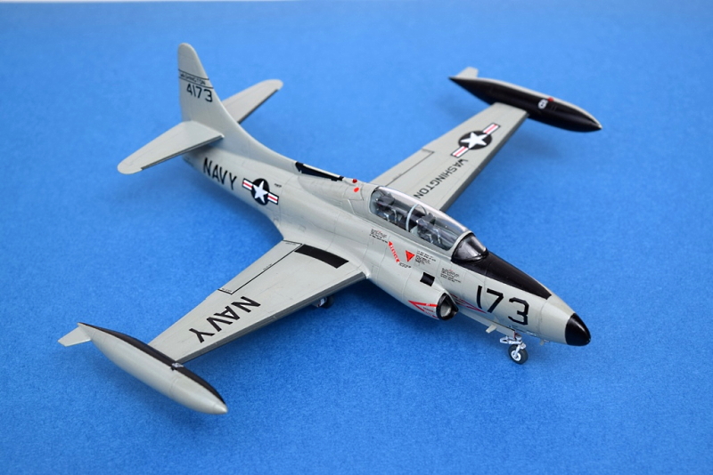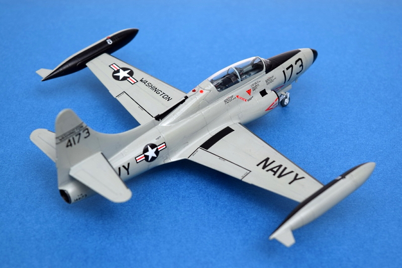 珍なT-33、って感じの飛行機。要するにT-33の艦上練習機型になる。航空情報臨時増刊『世界航空機年鑑1958』によれば、ロッキード社の自主開発で1953年12月15日初飛行。エンジンはT-33よりも30%以上パワーアップされ、高揚力装置として境界層制御装置(吹きだしフラップ)を実用機で最初に装備した機体だそうだ。同書には「原型より洗練され」とあるが、モコモコしていてプラモデル的には洗練と逆方向に見える。