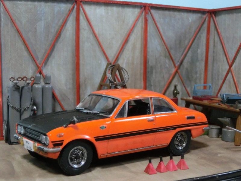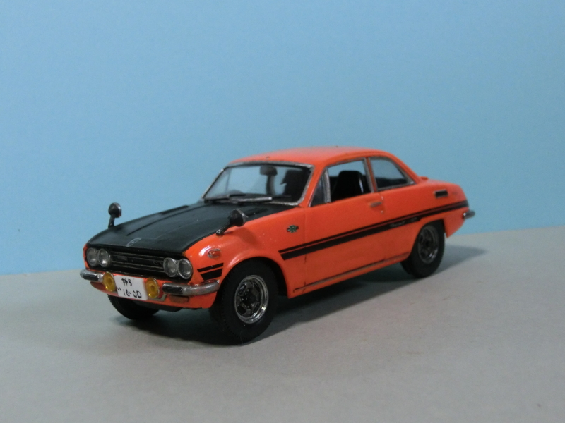 今月は、オレンジに黒のボンネットのベレットGTRです。