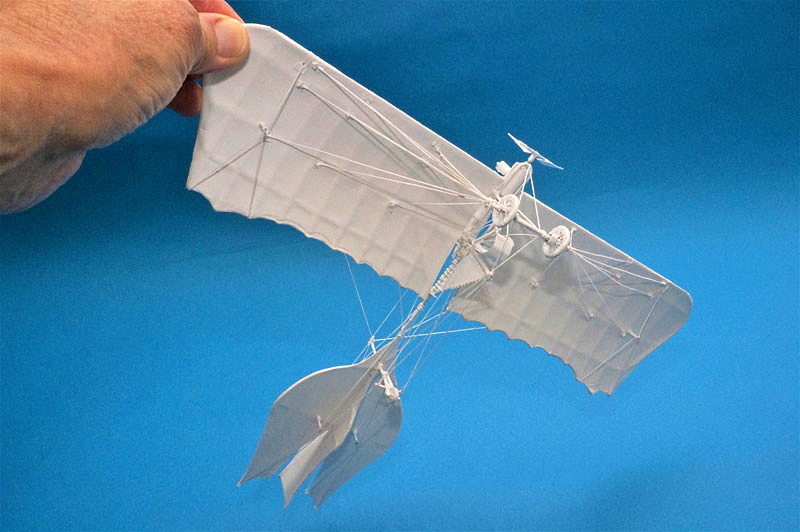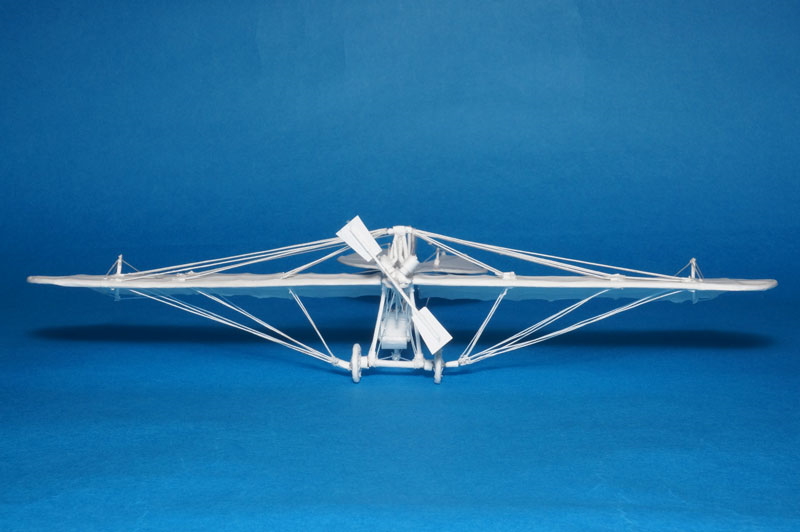 主翼の下に座席を吊り下げ今風に言えばウルトラライトプレーンですね。何とも効率の悪そうなプロペラ形状です。