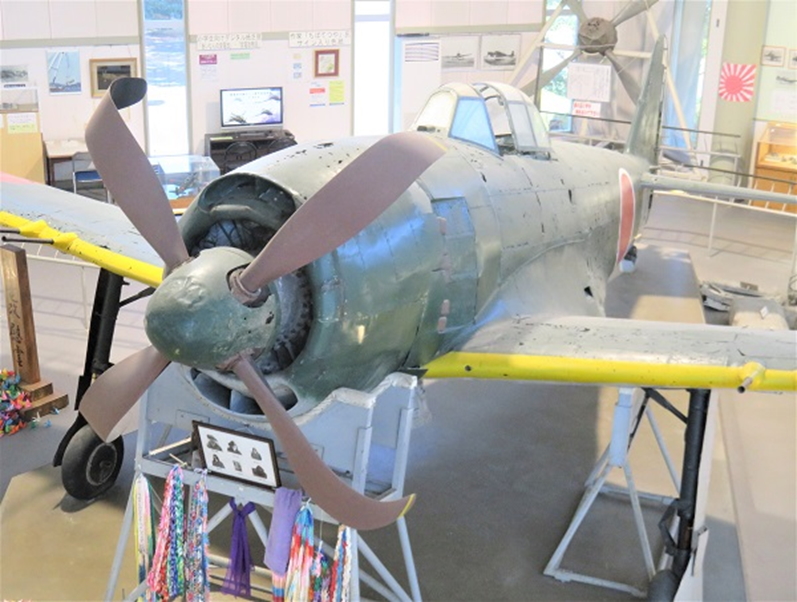 本機体は1979年7月に愛媛県南宇和郡城辺町(現愛南町)久良湾から引き揚げられました。1945年7月24日に米海軍機を迎撃して、未帰還の6機のうちの1機で、第三四三海軍航空隊 戦闘301隊 所属とされています。