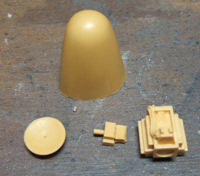 (写真4) 二〇年以上放置されて完全に脂っ気が失せたレジンパーツ。カリッカリでまぁじつに気持ちよく削れてくれます。しかしよく変形してなかったもんだ。歪んでいたりしたら修正が一苦労だったよ。