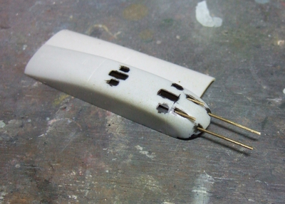 (写真9) 分離合体の主役はやはり主翼でございましょう。ネオジム磁石を使うのは当然として強度の確保もしなきゃなんない。真ちゅうパイプを貫通させて脱着と補強の両立を目指すのであります。