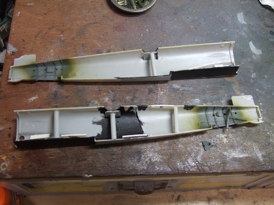 削っている内に歪んだら困るので胴体のあちこちにランナーで補強入れてみました。これで幾分ましでせう。