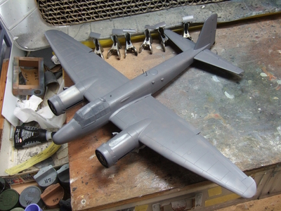 (写真2) そんな訳で鬱憤を晴らすかのように怒濤の制作であります。取り敢えずコクピットをだだーっと組上げ。古いキットだけれどもドラゴンの88は名作で、細部にまで神経行き渡っている感じが好き。現在の目で見ればパネルラインなどに若干の錯簡があるけれど些細な問題じゃ。大事なのはプロポーションとディティールの説得力だと思うのです。