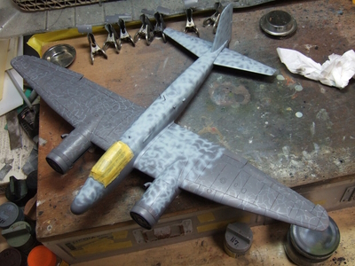 (写真13) 上面の迷彩が終わったら下面をベタ塗りしてスミ入れして小物パーツ着けた後にデカール貼って出来上がり。まぁ今回最大のヤマ場が磁石の埋め込みと主翼の水平レベル出しだったからそれを終えてしまえばあっという間ですよ。細々とした紆余曲折はあったかれど、取り敢えず目論見どおりに出来て良かった良かった。