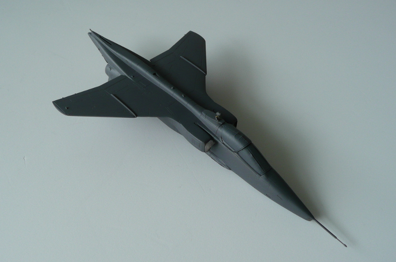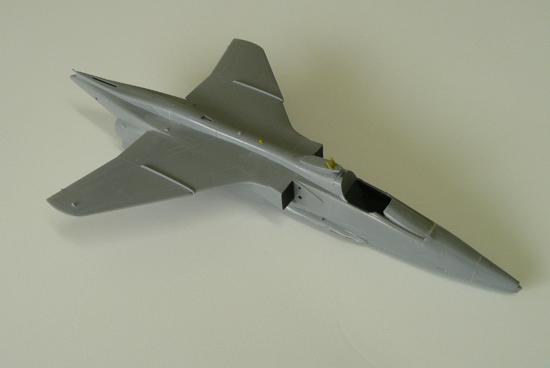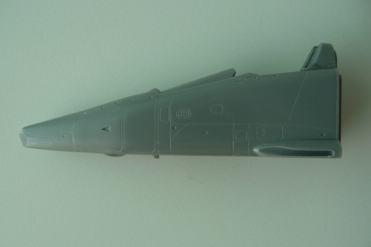 まずはフィットチェックです。胴体の左右、胴体と主翼、ウィンドシールドやキャノピーと胴体、垂直尾翼の取り付け部などなど、各部の合わせ目をチェックしておきます。