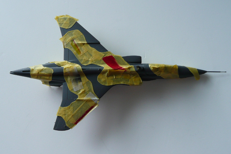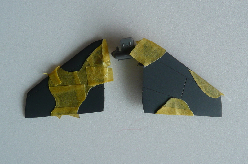 (写真17) 水平尾翼上面の迷彩塗装のマスキング