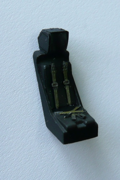 まずコクピットから始めました。キットのコクピットはバスタブ方式で、計器板やサイドコンソールはデカール仕上げとなっています。ここにはエッチングパーツを使用してアップグレードします。バスタブのコクピットにはエッチングパーツのフットペダルを取り付けてダークグレーに塗ります。コクピットの底は前脚収納部になっていますのでこの部分はインテリアグリーンで塗りました。