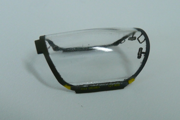 少し前後しますがウィンドシールドの取り付け前にエッチングパーツで作成したHUDを取り付けています。(写真28)