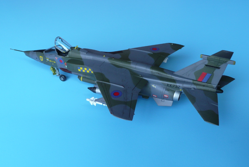 英空軍の量産機は1973年~1978年にかけて生産され、順次英空軍に納入されました。後に75機のGR.Mk1が、高出力のAdour Mk104エンジンへの換装をはじめ、電子機器のアップグレードや自己防御システムの追加などの改良が施され、呼称もGR.Mk1Aに変更されています。自己防御装置はAN/ALE-40フレアディスペンサー、AN/ALQ-101(V)-10 ECMポッド等で、AAMもMATRA550 Magicに加え、AIM-9G(後に9L)の搭載互換性が与えられ、1991年の湾岸戦争時にはオーバーウィングパイロンの搭載が可能となり、搭載ストアの数も増えました。
