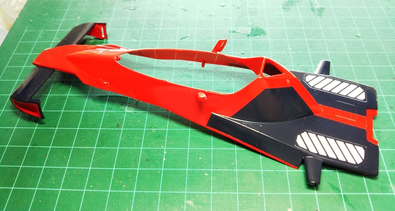 とは言え大判デカールをそのままでは上手く貼れそうもないのでカウルを塗り分けます。