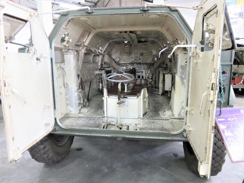 後部操縦席はそのままで、その後方に搭乗兵員用ベンチシートが設置され、背中合わせに6名ずつ、合計12名が外側を向いて座ります。