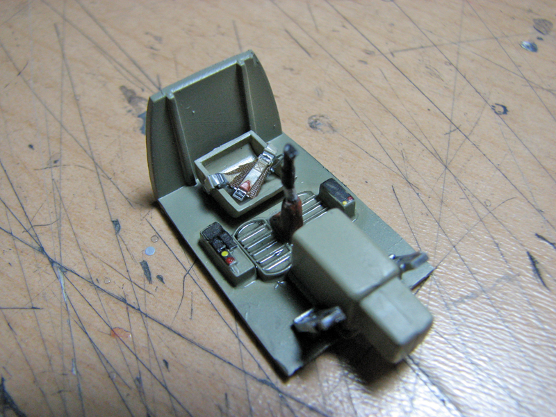 その他、排気管・機銃口の開口、操縦席への配管とシートベルト(ファインモールドのプラ製)の追加、主脚のブレーキパイプの追加を行ないました。