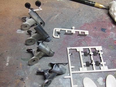(写真3) 機体の方が粗方出来たら小物パーツを塗って行きましょうかね。小物を先に仕上げておけば後々気が楽だからね。