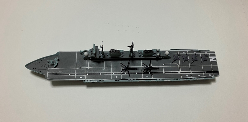 もう1隻は、インヴィンシブルです(ちなみに(Ⅵ)です)。こちらはWLモデルにするため、船体を喫水線でカット後、素組み、指定色塗装です。