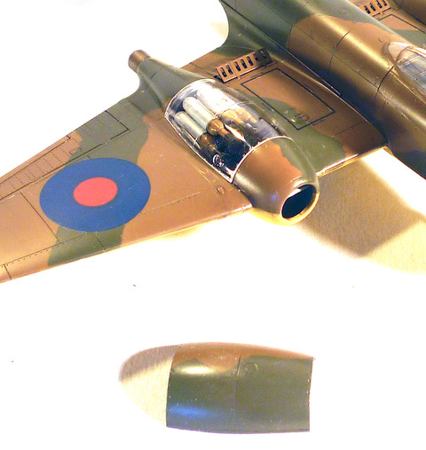 タミヤのミーティアは実感をよく捉えて、しかも作り易く実機同様「傑作」戦闘機だと思います。多少のヒケと主翼下面フェアリング部分に段差が出るのでパテを塗って少し削って均してあります。今回はプロトタイプ型を作りましたが戦闘機、実験機などミーティアファミリーを作って行きます。