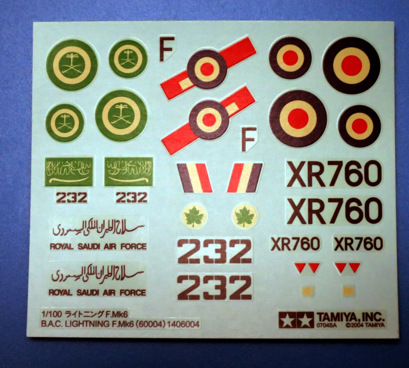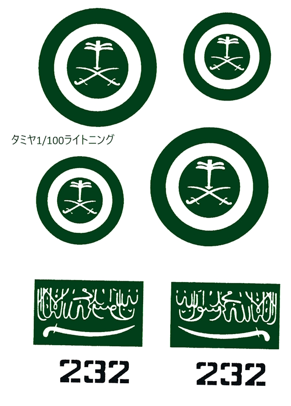 下はキットデカールです。サウジアラビア空軍機としたかったのですが、緑色が浅くて、ちょっと使うのが憚られました。