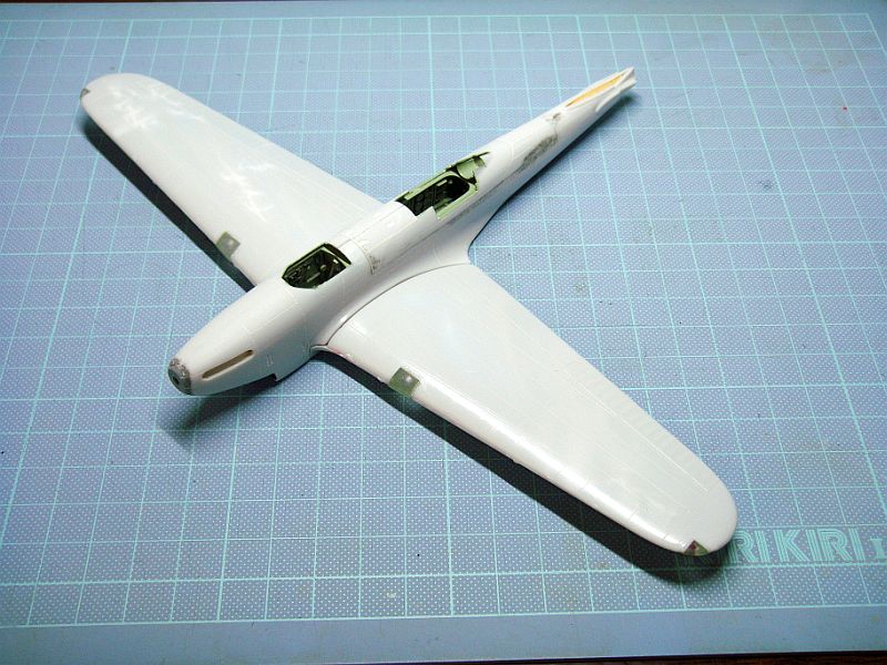 胴体を組み上げた後もあちこちの隙間埋めと段差修正が続きます。翼関係でも組み上げた後の変形防止策、主脚取付けの補強策など、インストシートに無い作業が色々増えていきました。