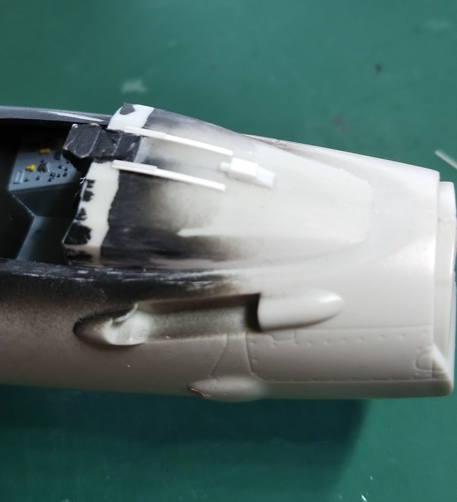 その計器フード上面には実機写真を参考に それらしく部品を追加しておきました↓