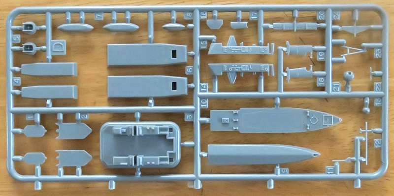 このキットには水中翼ミサイル艇のペガサス級と、アクセサリーパーツとしてLCAC(エア・クッション型揚陸艇)等が小さなランナー1枚分付いてきます。ペガサス級の武装であるハープーンのみ本体Aランナーから余分な2基分を持ってくることになります。