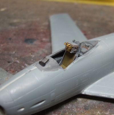 (写真5) 段差と継ぎ目の処理を終えてシートとHUDを装着。キャノピー閉めたらよく見えなくなるので、これがほぼ見納め状態ですわ。