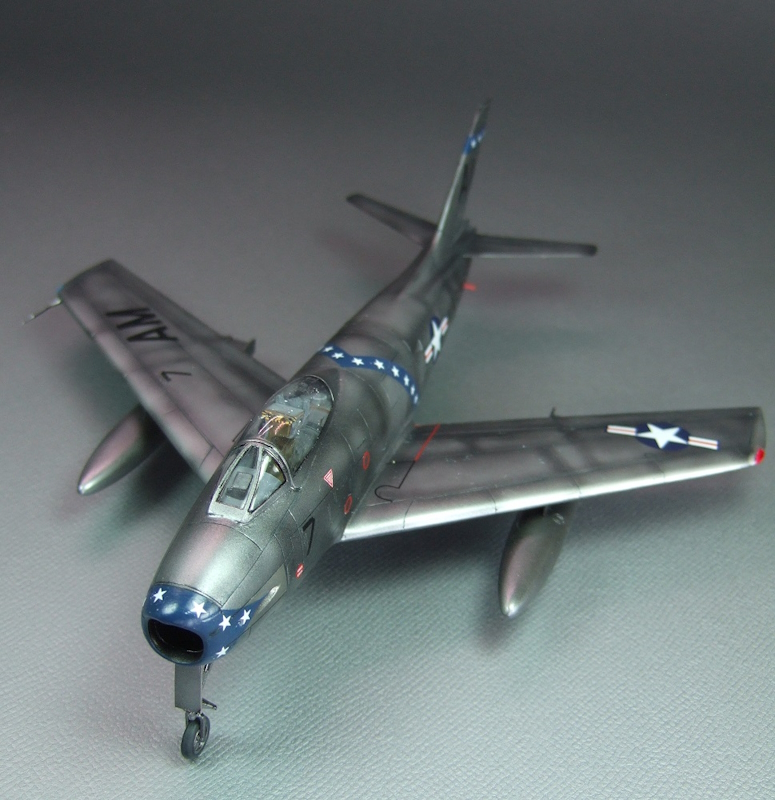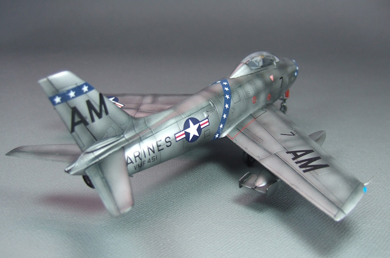 (写真13) おまけ。すご~く昔に作ったエマーのFJ-4フューリーです。ずっと出しそびれていたのでほっと一安心。今ならもっと上手く作れる自信があるけれど、FJ-4ってエマー以外からは出ていないのかなぁ。スウォードが出してくれるかも、って待ってるのにFJ-3で止まってる。どーゆーことなんでしょうかねぇ。