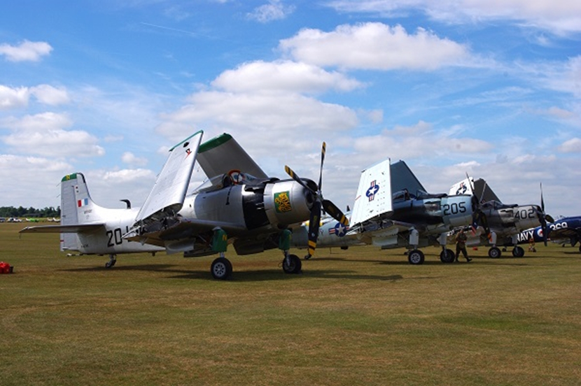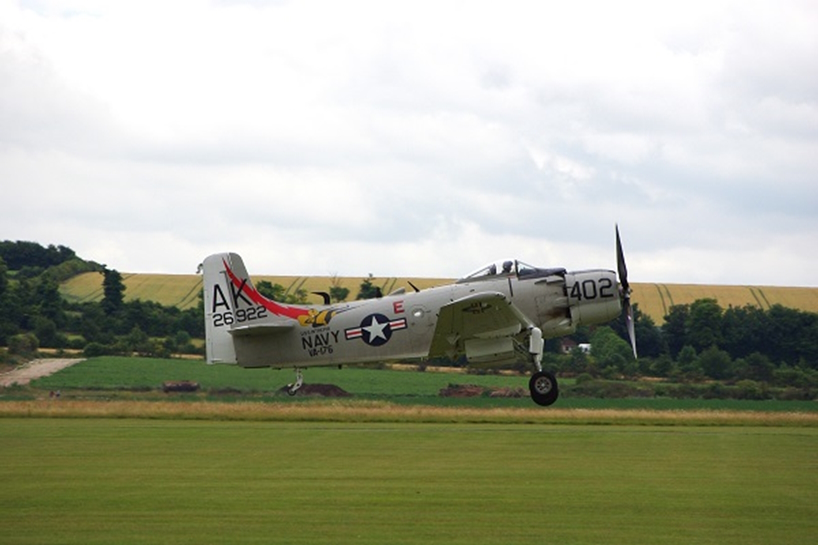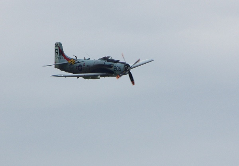 この日の3機のスカイレイダー。手前のフランス空軍機(AD-4NA 127002)の軍事コード20-LNで、フランス、ル・アーブルで個人所有のようです。
