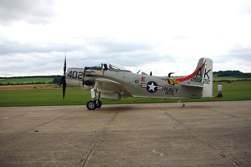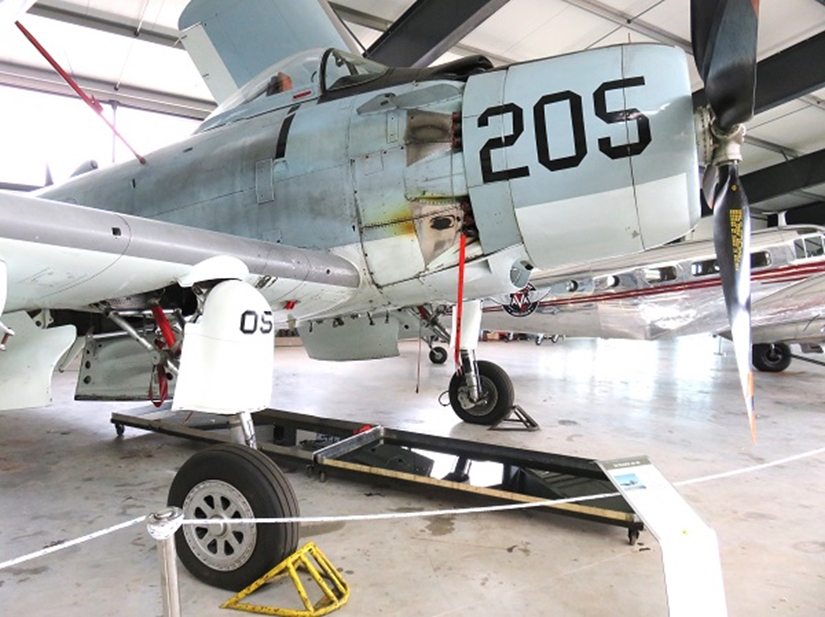 124143機は飛行可能な状態にあります。戦火の中で頑丈振りの伝説を積み上げて来たスカイレイダーに、2011年7月の接触事故は新たな伝説を加えたのでしょうか。
