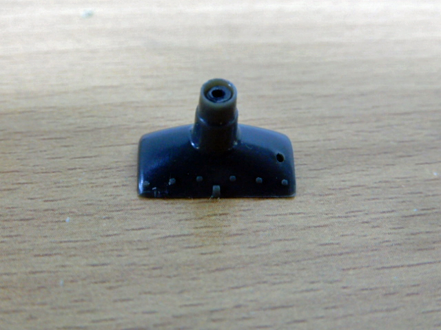 榴弾砲を砲塔に組み込んだ後に問題点を発見してしまいました。75mm榴弾砲の取っ手の部分が抜けていないのです。幸い榴弾砲の砲身を上下させる軸とその受けの部分の寸法に余裕があったので軸を少し切り飛ばして取り出すことができました・・・汗・・・。写真を見ると,左の軸が少し短くなっているのが分かると思います。もちろん,この状態で砲塔に後はめすることも可能です。