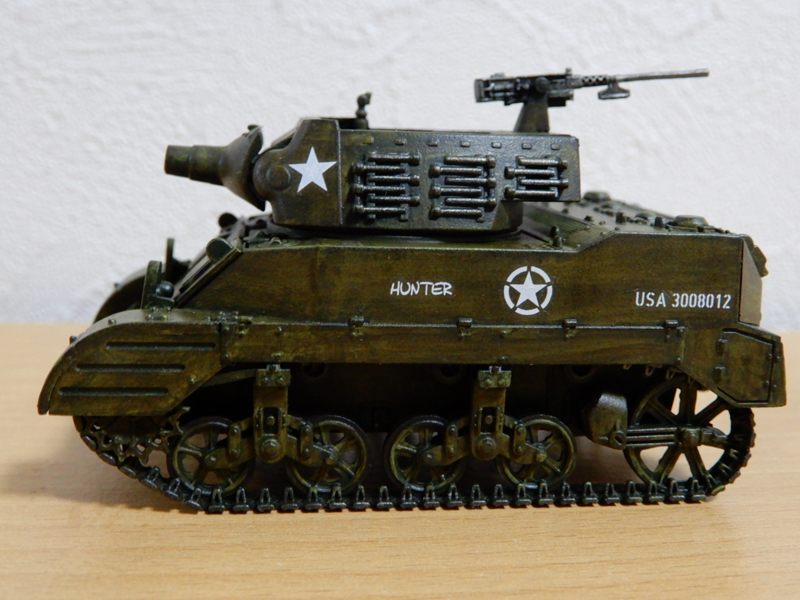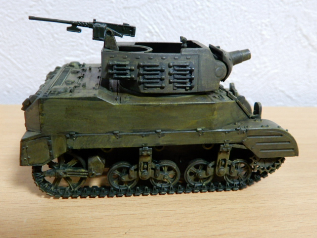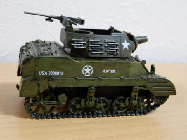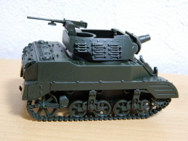 M3軽戦車の改良型であるM5の車体に,75mm榴弾砲を装備したオープントップの砲塔を載せて,自走榴弾砲としたもの。1942年に正式採用され,イタリア戦線,西部戦線,対日戦に投入された。小型の車両ではあるが,装甲,機動力,兵装のバランスが優れており,戦場での評価は高かった。