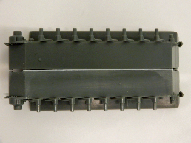 4連3列の転輪とキャタピラは,接着しないでも本体に固定できます。各自で塗装手順を考えたら,一番よいタイミングで取りつけてやるとよいでしょう。