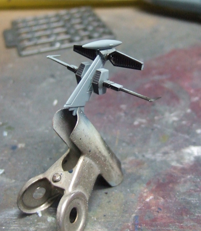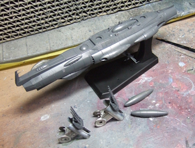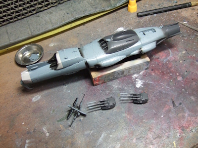 (写真6) 取敢えず影になる部分にぱぱっと黒でシャドー吹いとく。まぁこんなもんかのう。防空用のパルスレーザーもお腹の下にちょんちょんと追加で。