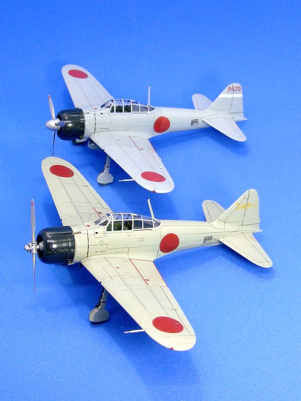 零戦11型との2ショット。11型と比べると十二試艦戦はちょっと寸詰まりな感じで、水平尾翼の取付け高さの違いが目に付きます。