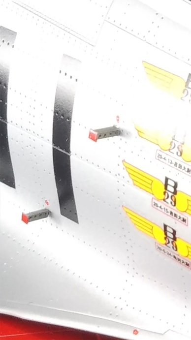日の丸と垂直尾翼の一部を赤色に塗装しておきます↓