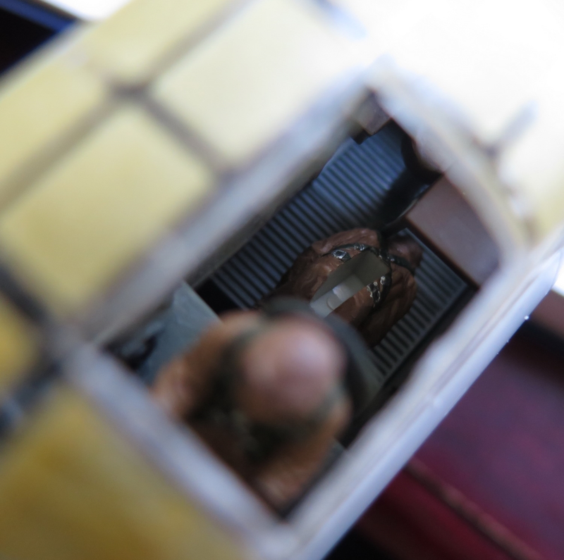 風防は機体にがっちり接着したので今更外すのはNG.大問題かと思われたのですが、幸い風防上部を取り外すことができ、ピンセットや棒を駆使して再び操縦席に座らせることができました。