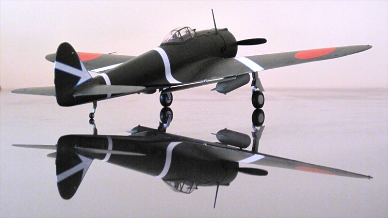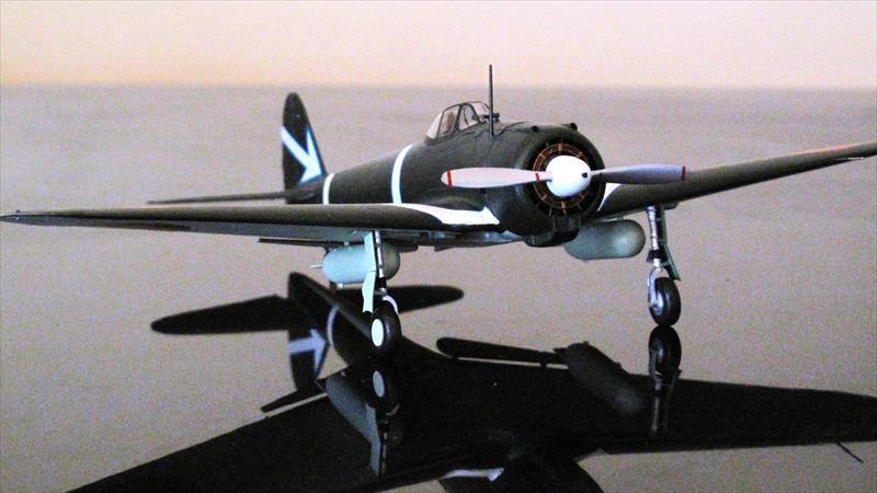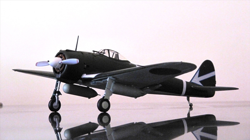 作例は 飛行第64戦隊 隊長 加藤建夫少佐乗機としました。朝焼けの水平線をバックに翼を休めるキ43-I に見えるでしょうか。